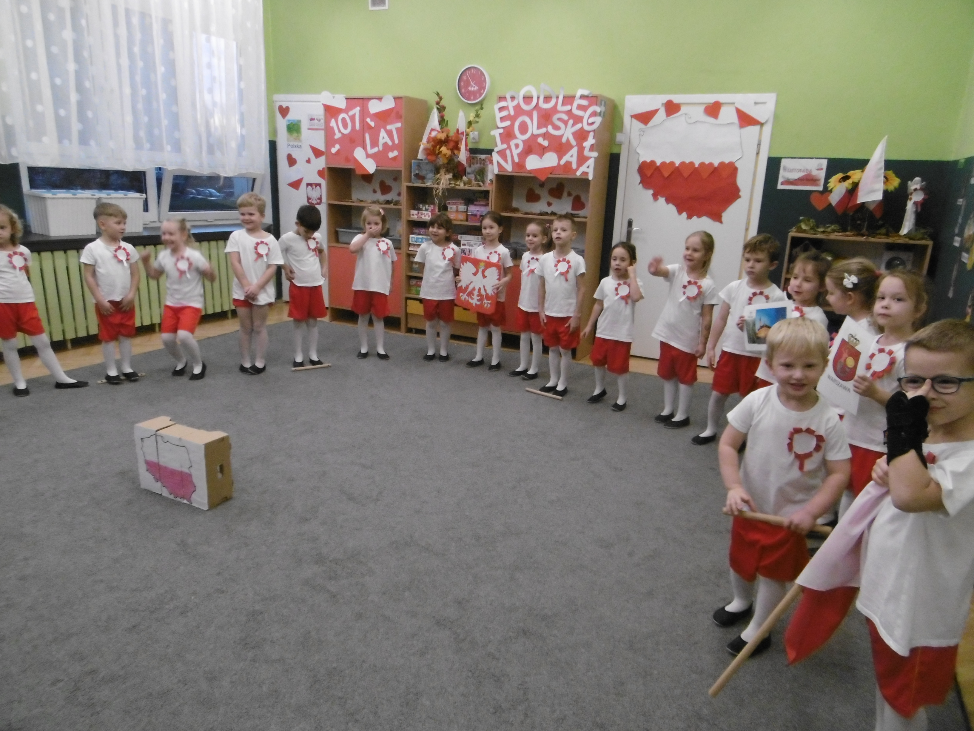 7 listopada wszystkie nasze przedszkolaki rozpierała duma z bycia Polakami. Tego dnia dzieci z grupy IV przygotowały uroczystość z okazji 107 rocznicy Niepodległej Polski. Flaga, godło, hymn Polski i część artystyczna sprawiły, że sala wypełniła się radością i wzruszeniem.