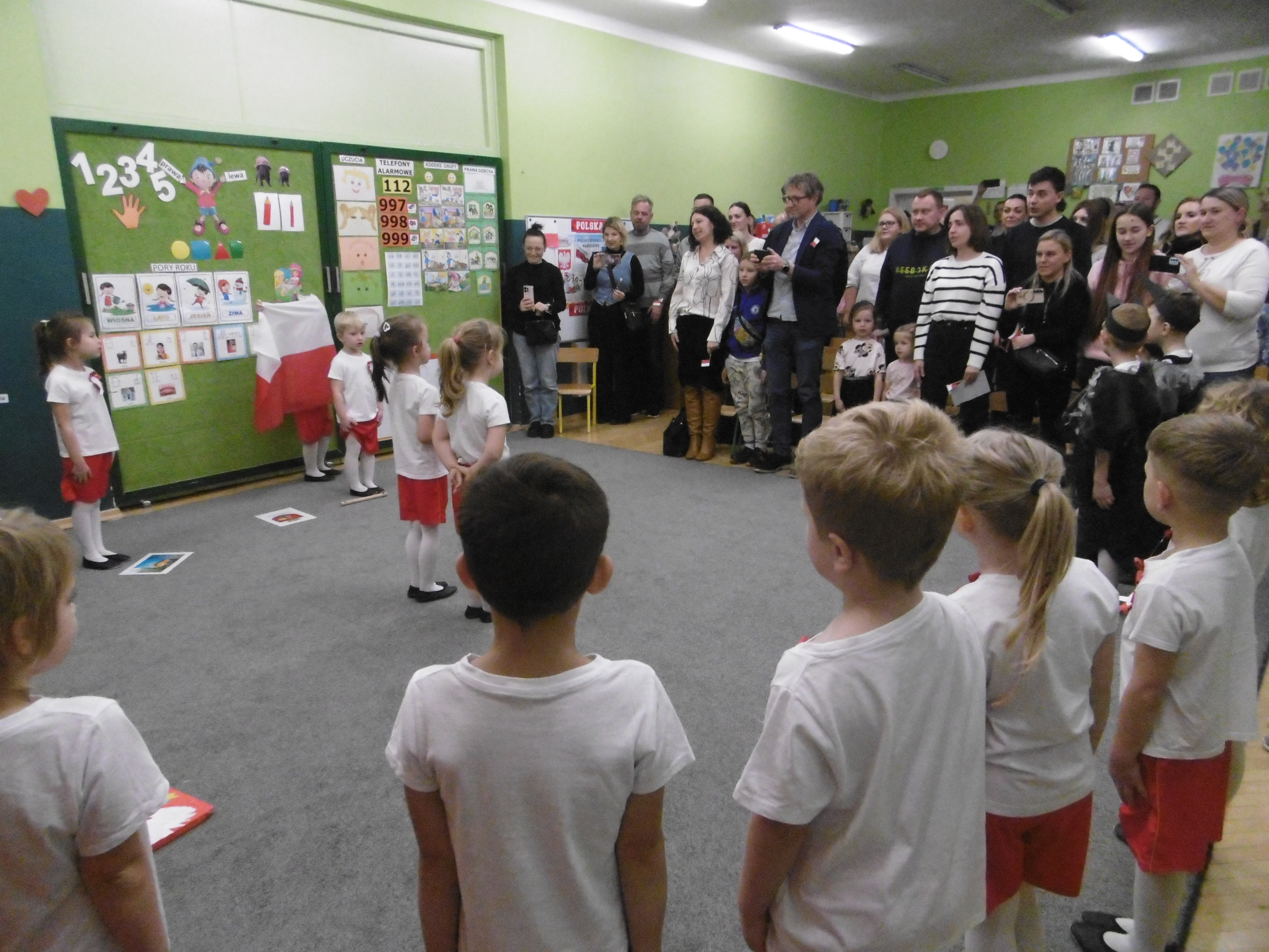 Na scenie zabrzmiały utwory, które od pokoleń poruszają serca Polaków. Na zakończenie cała społeczność przedszkolna odśpiewała cztery zwrotki hymnu „Mazurek Dąbrowskiego”. To była wyjątkowa chwila, która na długo pozostanie w naszej pamięci.